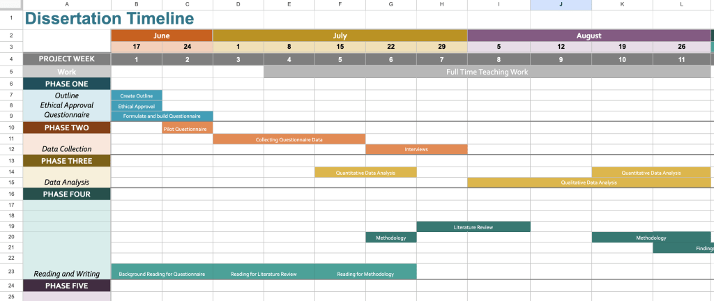 This years schedule may be different to yours, so make sure you know where to find all the details at your institutions and add them to your calendar. I’d then recommend drawing up a timeline as if you’re a project manager, like mine below.